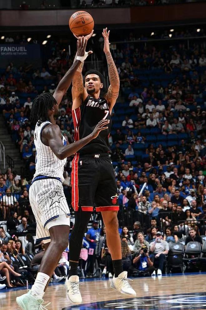 熱火過(guò)去3場(chǎng)季前賽,分別輸給魔術(shù)、雄鹿與馬刺一勝難求,魔術(shù)過(guò)去兩場(chǎng)季前賽連續戰勝熱火與76人取得2連勝。本場(chǎng)熱火缺少阿德巴約、希羅、約維奇、羅齊爾,魔術(shù)缺少班凱羅、貝恩、薩格斯與大瓦格納。首節比賽雙方開(kāi)啟對攻模式,均是單節轟下30+得分,魔術(shù)開(kāi)局9-1領(lǐng)先,熱火一波13-5攻勢追平比分。魔術(shù)逐步以24-28被反超4分,魔術(shù)隨后3分半鐘打出一波13-4攻勢反超比分,首節結束魔術(shù)37-32領(lǐng)先熱火。