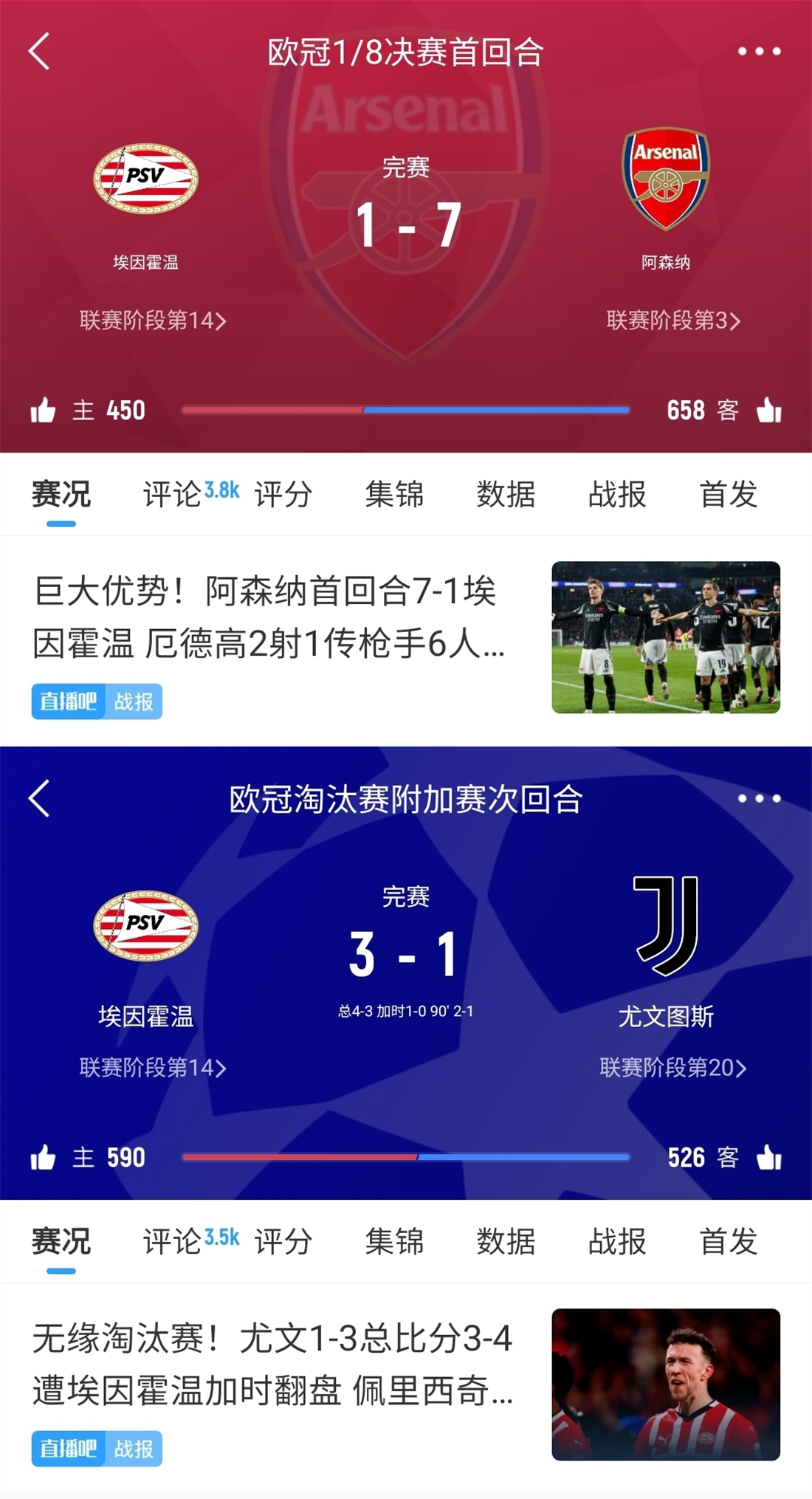 計算題:阿森納7-1埃因霍溫,埃因霍溫3-1尤文,那阿森納vs尤文幾比幾?